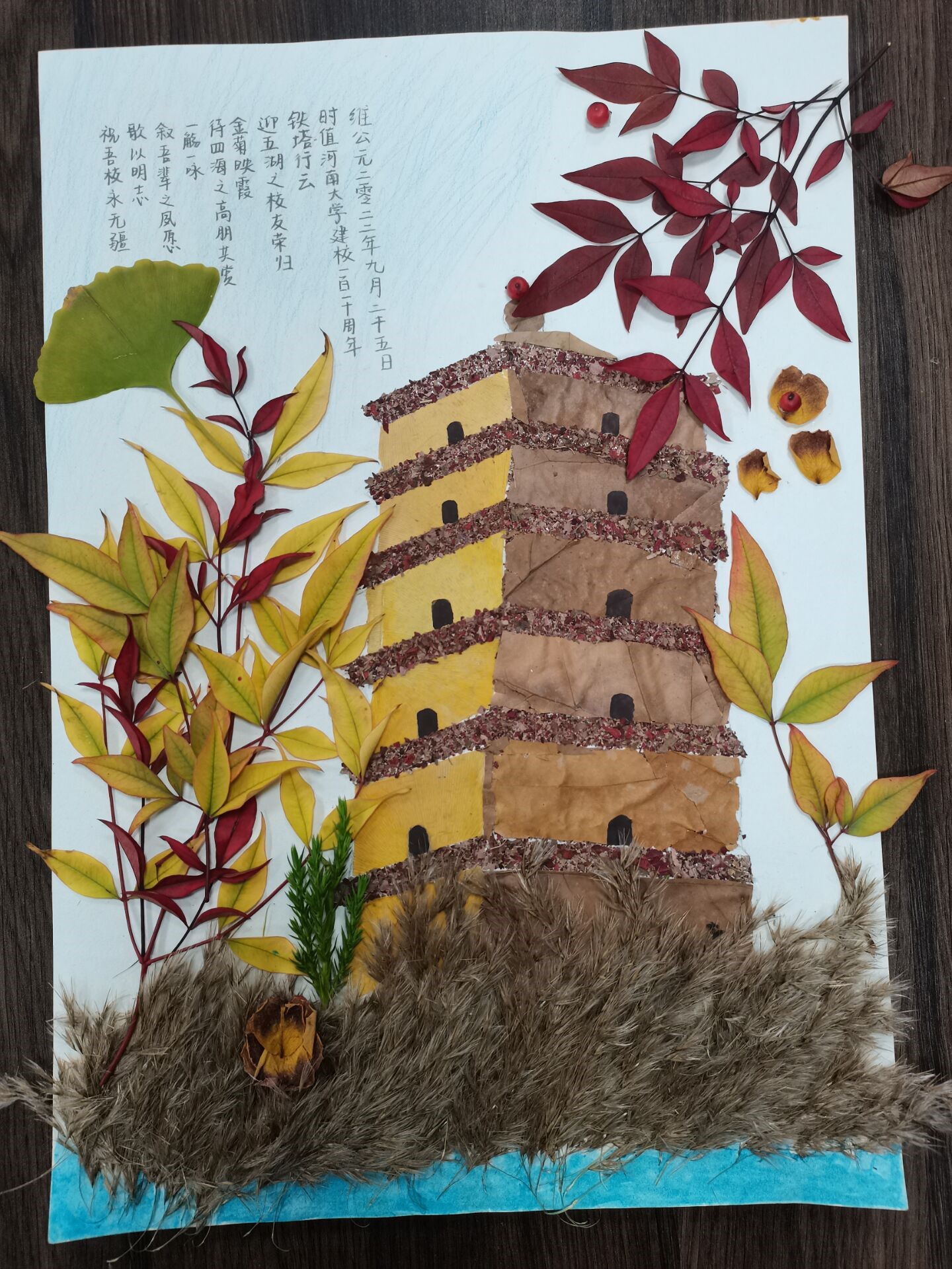 本次落叶剪贴画大赛经学院评选与投票,最终评选出优秀作品共 12 份,其中 《铁塔学子》和《百年河大风华正茂》荣获一等奖。