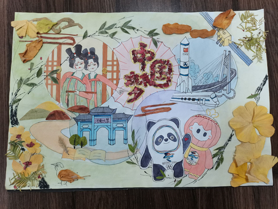 每一幅落叶剪贴画中都蕴含了同学们的奇思妙想。活动一经发布,同学们就积极参与。落叶在同学们的构思下,摇身一变成为了调皮的松鼠、满载而归的刺猬、翩翩起舞的秋姑娘……同学们的作品不仅内容丰富多样,主题也富有深意,有铁塔学子对河大的深沉爱恋、有对袁隆平老先生的深切追忆、还有对中国共产党建党一百周年的深深祝福……同学们用自己的创意描绘出了秋天的风采。