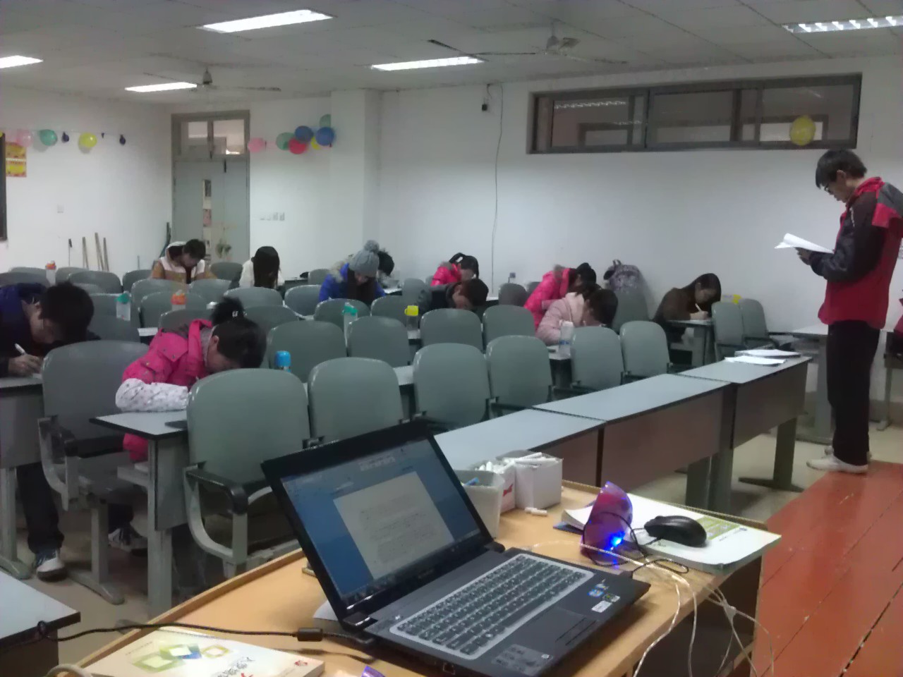 2011级化学实验班于12月13日上午在院526教室举行主题为“以考促学 查漏补缺”的四级模拟考试。2011级实验班全体同学参加考试,崔朋飞、符梦凡两位同学担任监考。