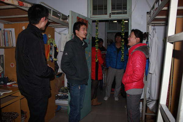 金明校区北苑28、29号宿舍楼慰问该年级同学。2011级年级长陈帅等学生干部随行。