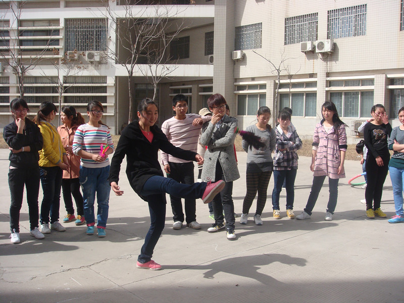 活动由跳绳、转呼啦圈、踢毽子三个趣味游戏组成,形式新颖有趣,引来同学们热情参与。参赛学生自由结合成三组,各组队员齐心协力,边跳绳边跳远,男生速度之快更是引得阵阵喝彩;转呼啦圈是女生擅长的项目,连转两分钟不在话下,在未经过训练的情况下,同学们创造了一个又一个“赛场奇迹”;踢毽子游戏对大家是最大的考验,由于天气原因,毽子老踢不到指定的方格内,在练习了一番之后,同学们总算可以把毽子踢到“幸福”方格内。
