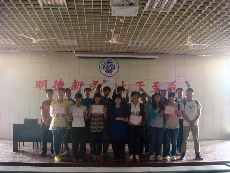 金明校区太极拳比赛二等奖,并对此次比赛作出总结。在总结该年级同学在太极拳练习中的表现时,她高度赞扬了同学们坚持不懈,勇于克服困难的精神品质,并希望大家能不断成熟,在枯燥繁琐事情中寻找快乐,勇往直前。接着,针对太极拳训练过程,会议表彰了表现突出的班级及18位活动标兵,公布了2013级 “中国梦”征文比赛二等奖及优秀奖获奖名单,马洁为获奖同学和班集体颁发证书及奖品并合影留念。 随后,马老师向同学们传达了学校辅导员会议精神,她强调了要“注意网络言辞,严禁盲目跟帖”等注意事项。最后,会议在一片热烈的掌声中圆满结束。