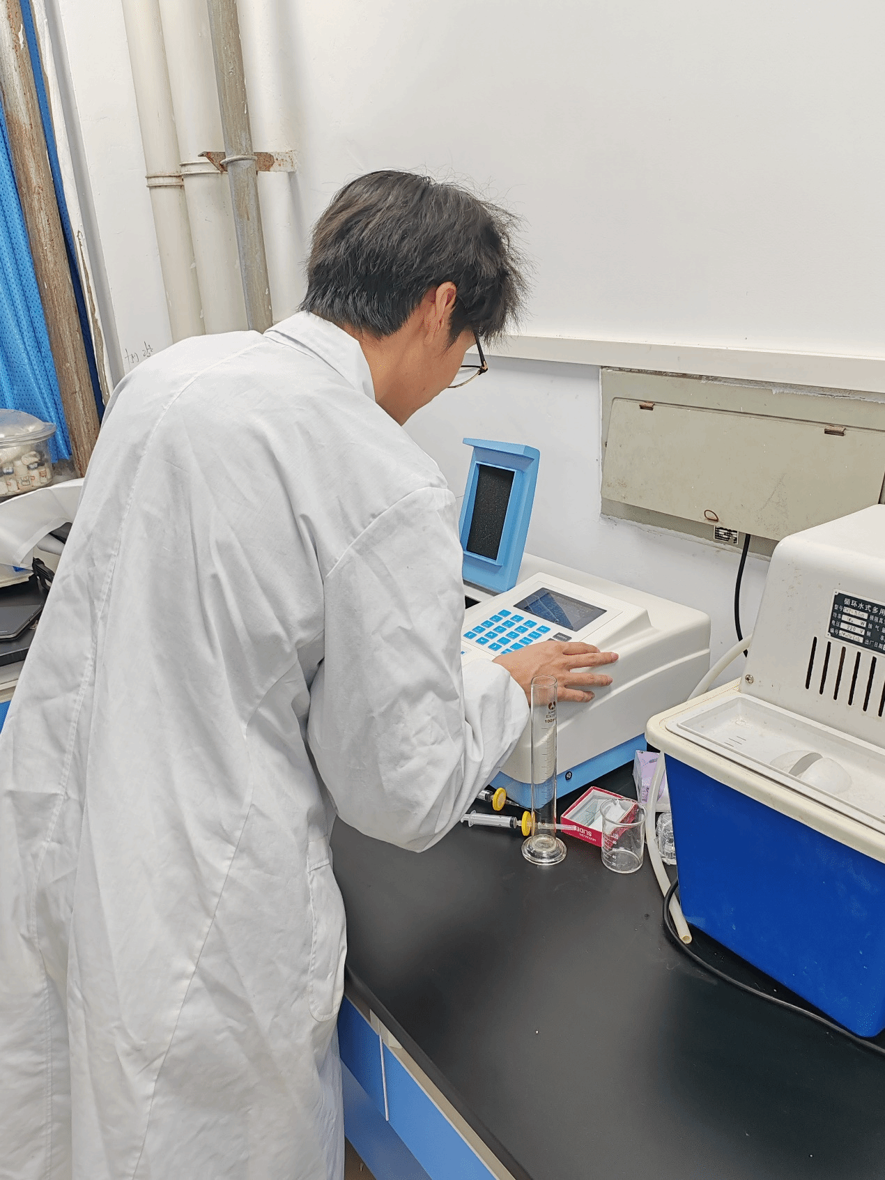 黄河水的综合利用,是沿黄省区市面临的共同问题。习近平总书记在北京大学考察时强调,“学术、知识不能只是在嘴上,要联系实际,做到知行合一、格物致知、学以致用。”作为当代青年人,我们有责任,也有义务治理好我们的母亲河。对此,团队成员进行了水污染物处理探究实验。研究表明,黄河水中常见的污染物主要有咖啡因、抗生素、非甾体抗炎药等,团队成员利用紫外分光光度计测定水样中污染物的吸光度,通过吸光度的变化反映催化剂对污染物的处理效果。经与指导老师探讨,团队成员决定利用CdS催化剂和改进过的CdS-POM催化剂分别降解水中污染物,并进行污染物吸光度检测。实验数据表明,CdS催化剂和CdS-POM催化剂都可以降解黄河水中的污染物,但是CdS-POM催化剂的降解效果更加显著,在提高光催化剂稳定性的同时,也能够提高催化活性。