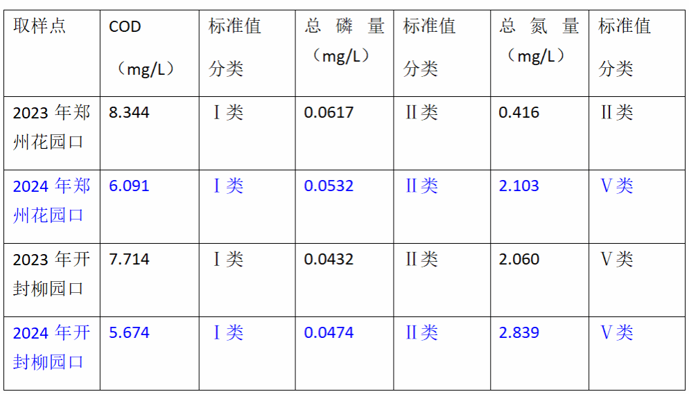 郑州花园口和开封柳园口总氮量数据与去年相比,有增加趋势,标准值分类已由Ⅱ类变为Ⅴ类,这一数据提醒着两地政府要抓紧流域废污水的排放,在抓短板的同时不能懈怠其他方面。而化学需氧量和总磷量数据都有明显降低,即水资源污染程度有下降趋势,在这两组数据上,政府的治理措施取得了显著成效。