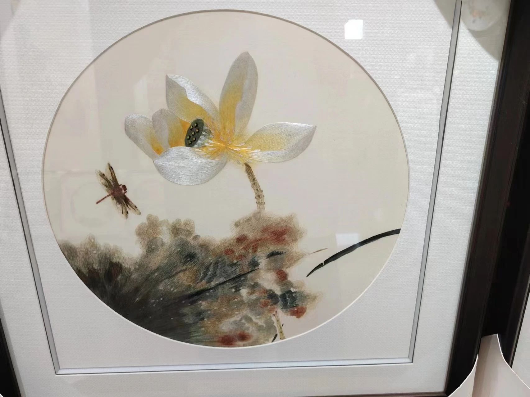 为了重焕汴绣的光芒,团队成员继续寻访之旅。团队成员们分别来到了无同轩和文兰轩两个艺术馆。在这里,成员们感受到汴绣艺术的多样性和创新性。这些作品不仅展现了传统汴绣的精湛技艺,还融入赋予汴绣新的生命力的现代元素。同时通过与艺术馆老板的交谈,成员也了解到汴绣行业发展路线单一,销路窄,缺乏创新性。针对这些问题,当地文化部门积极开展相关活动推动汴绣的传承与创新。团队成员们也认为创新出更多符合现代文明审美的产品会推动汴绣的发展。