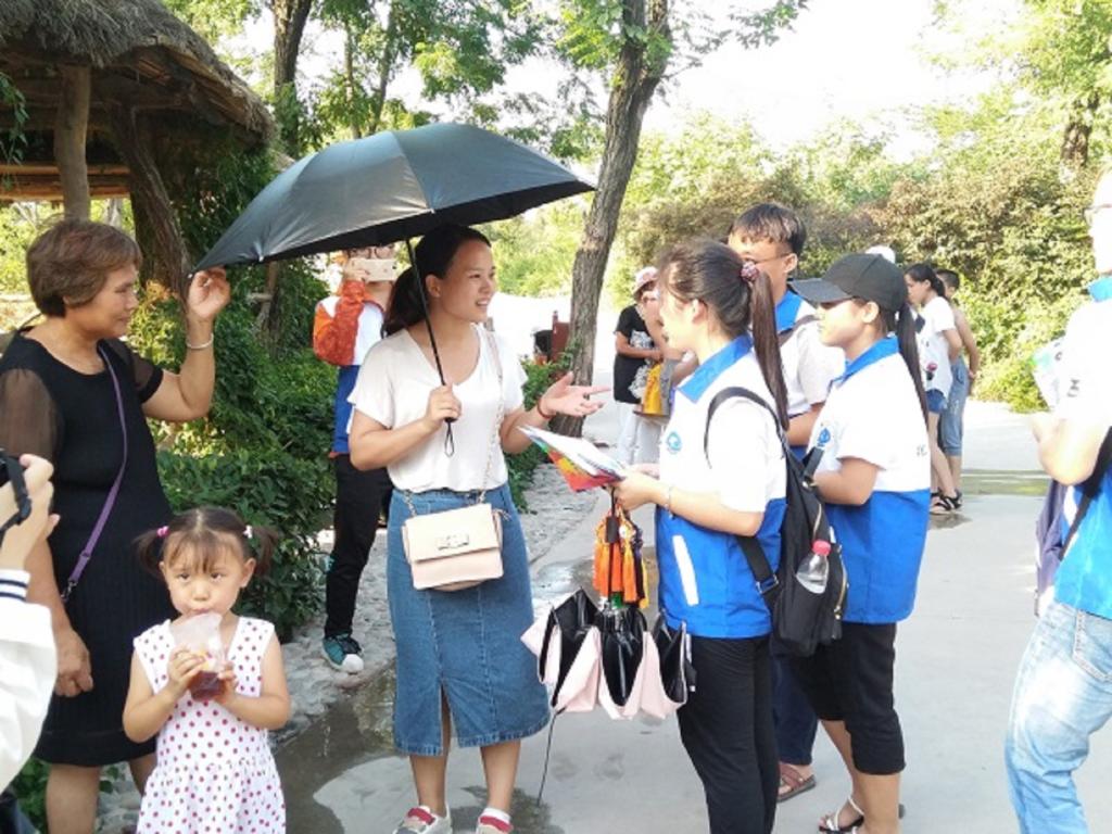 志愿者们向游客新颖细致地介绍文明旅游的理念,倡导游客在旅行观光的同时,规范自己的行为,做到讲卫生、懂礼仪、守秩序、遵法规、爱护环境和公共设施等。同时,志愿者们以身作则,一路沿程前行,一路俯身捡起路边的垃圾。一言一举,一行一动,感动着每一位游客,不仅赢得了游客的赞许,更带动了游客与志愿者们一起俯身捡起垃圾,将文明出行的理念散播的更远更远……