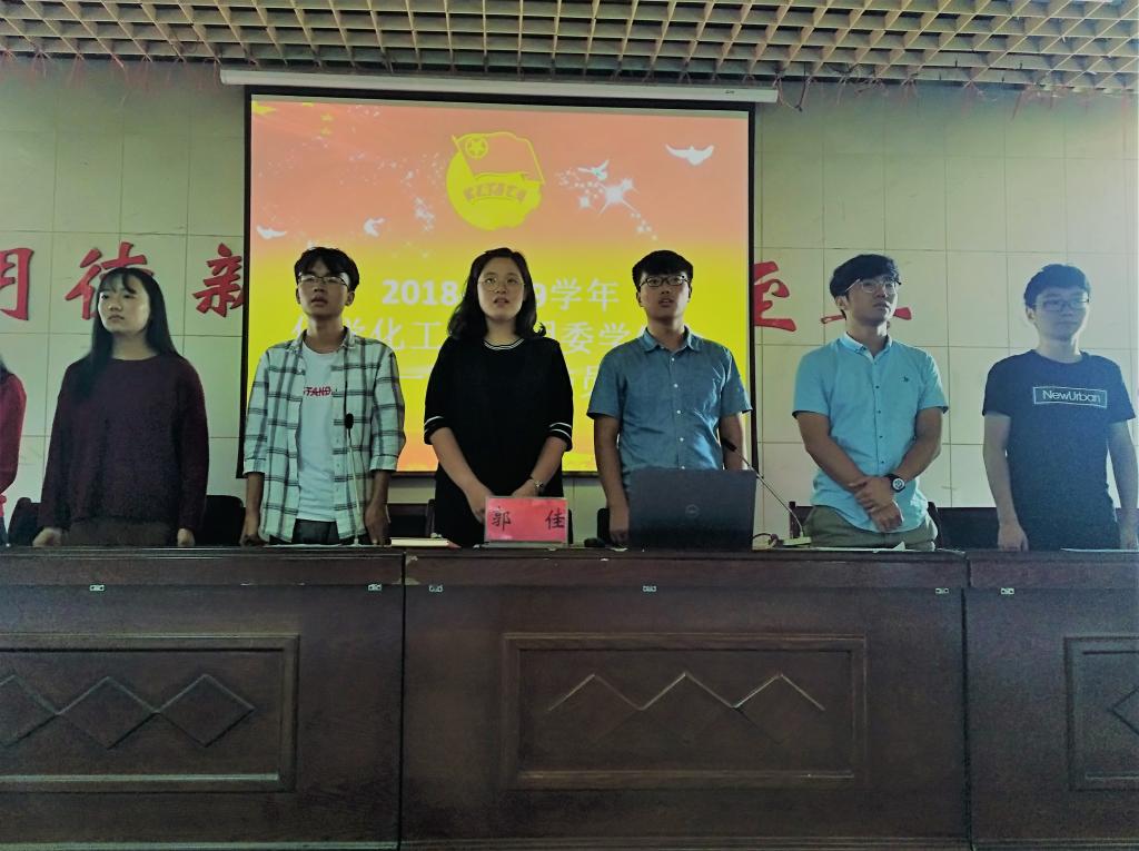 招新视频向大家展示了一个充满活力的化学化工学院,同时也为本次会议的顺利举行做了铺垫。大会第一项,首先,郭佳向在座学生会成员做自我介绍以及主席团成员的介绍。接着,郭佳发表重要讲话,她指出,学生会的存在是为同学,为老师服务,在这里,大家不仅可以收获友情,还可以锻炼自我,提升能力。其次,郭佳向18级同学作了简单的入党介绍并且提出了自己对2018级学生会委员的几点希望,其一是为学生会注入新鲜血液,让学生会更好地为大家服务;其二为希望他们能够在大学期间带着自己的初心,带着自己的梦想,丰富大学生活,为自己打造一个良好的平台,四年之后满载而归,不留遗憾。