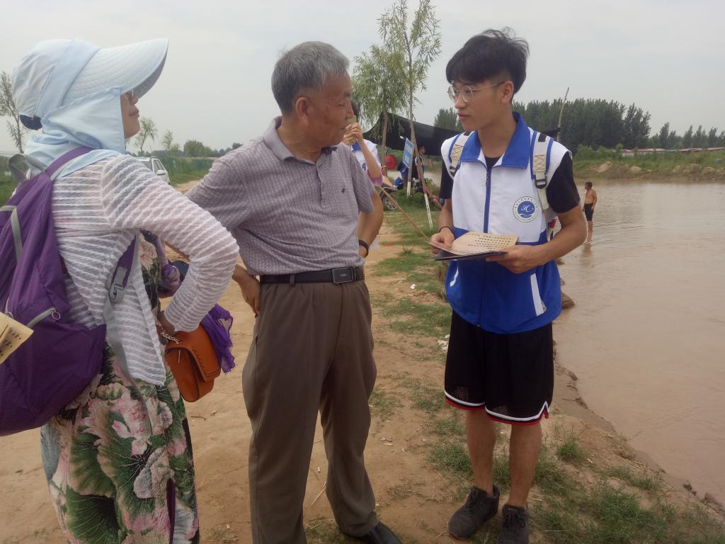 之后观察团进入景区,开始了保护水资源的宣传。游客们认真听取团队的理念,并且与队员交流了自己的想法,给予队员鼓励支持。景区的工作人员讲述了他多年来在黄河边工作的感想。观察团有幸遇到八叉书库