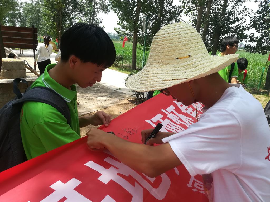 稍后,调研团到达张庄村焦裕禄精神体验教育基地,认真聆听基地村长讲解焦裕禄治理“三害”的事迹,村长热情地为调研团成员描述了习近平总书记三次考察兰考的情景,并表示出了兰考人民继续发展兰考的决心和信心。他讲到“焦裕禄书记带领我们治风沙,一铁锹土一铁锹土往上翻,再栽上泡桐,当天晚上就刮了很大的风,大家都很忐忑,不知道我们的方法有没有效,第二天一看,那片树林依旧好好的,我们都很高兴,找到了解决办法。”朴实的话语真情流露,他自豪的说,“你们看到的树已经是第三代了,我们也在不断的摸索,找更适合的路。”同学们听完感慨良多。接着,为加强自身建设,更深入体会当时的艰辛,调研团在基地参加义务劳动,汗水顺着大家的脸颊流下,虽然辛苦,心中对焦裕禄精神的理解却更加透彻。