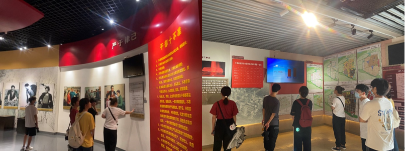 同时,实践团还参观了习近平总书记在兰考调研指导党的群众路线教育实践活动系列讲话专题展览。在展馆的“今日兰考”部分,实践团集体观看了《走进兰考》短片,了解了兰考今日建设成果,看到了新时代下兰考县的变化和崭新风貌,也看到了未来“十四五”时期兰考县的规划发展方向。