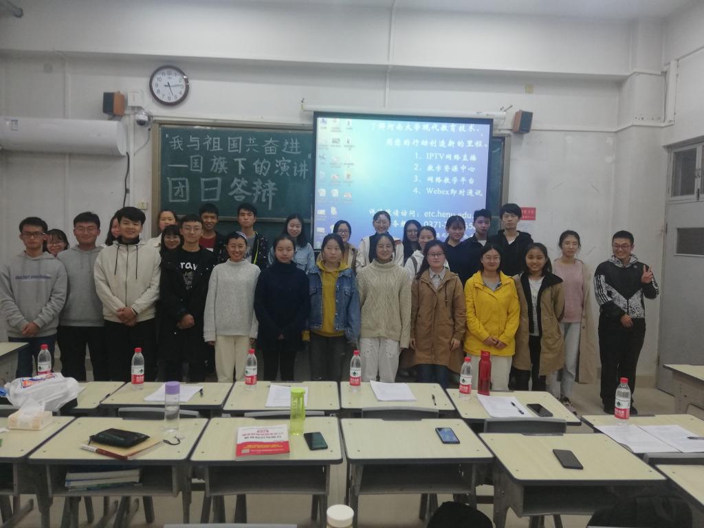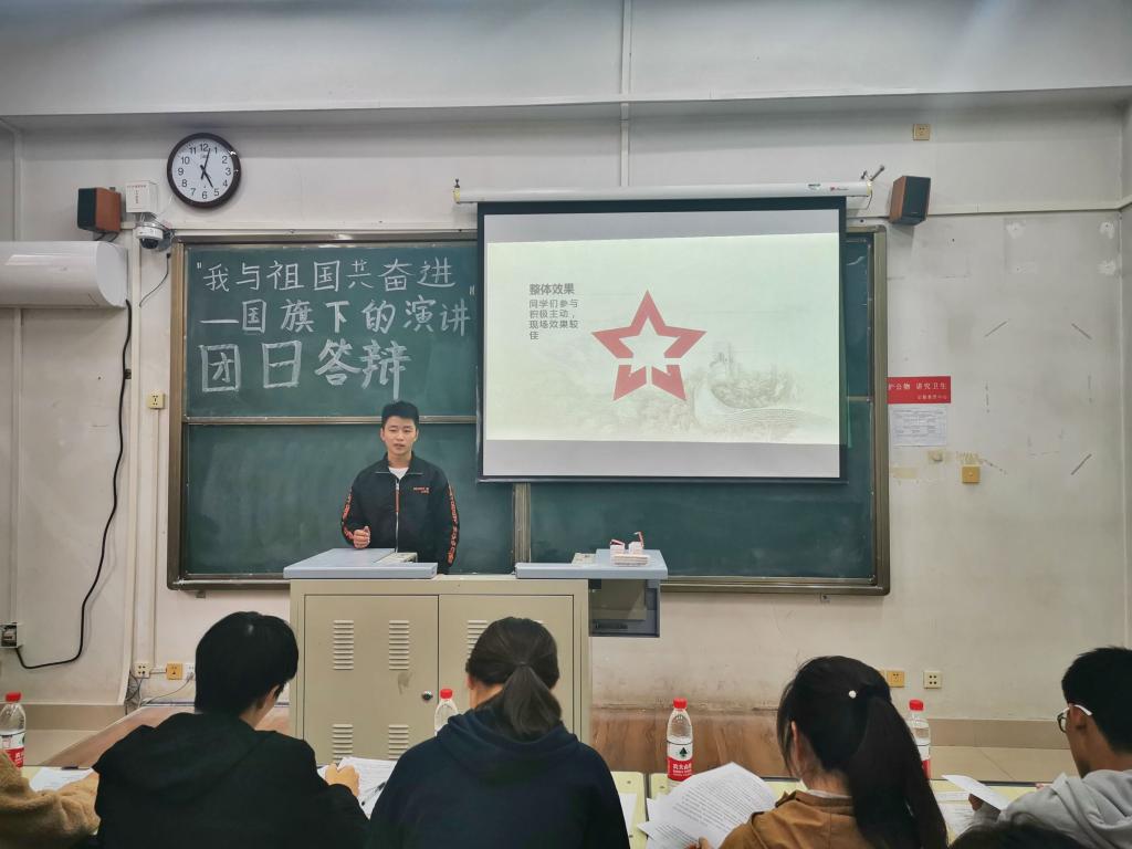 团日活动风采,大力唱响礼赞新中国、奋进新时代的青春旋律,10月17日下午,化学化工学院于7102教室举办“我与祖国共奋进——国旗下的演讲”团日答辩活动。本次团日答辩由团委组织部刘璐主持,团委副书记黄梦瑶、王金鑫及各年级团支书担任评委,各支部书记参与。