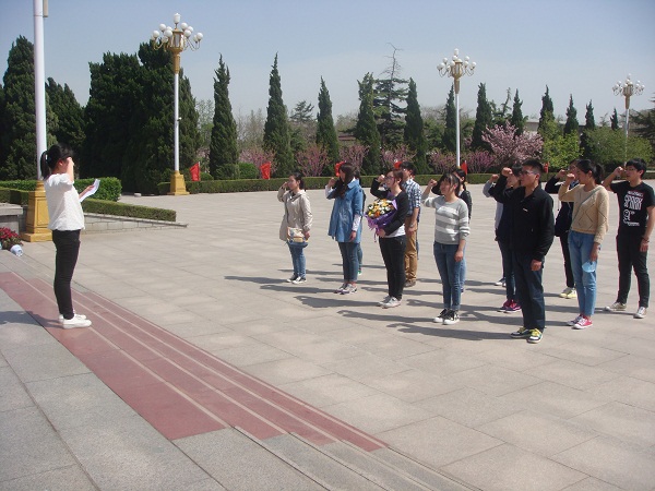 2013级化学二班全体学生前往开封市烈士陵园,缅怀先烈英雄。烈士陵园科长马丽热情接待,带领同学们重温革命先烈的英勇事迹。