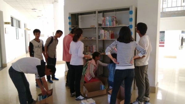 青年志愿者们多次放弃午休时间,精心装饰书架,及时将400多册图书分门别类,使“漂流”更加规范化和美观化。
