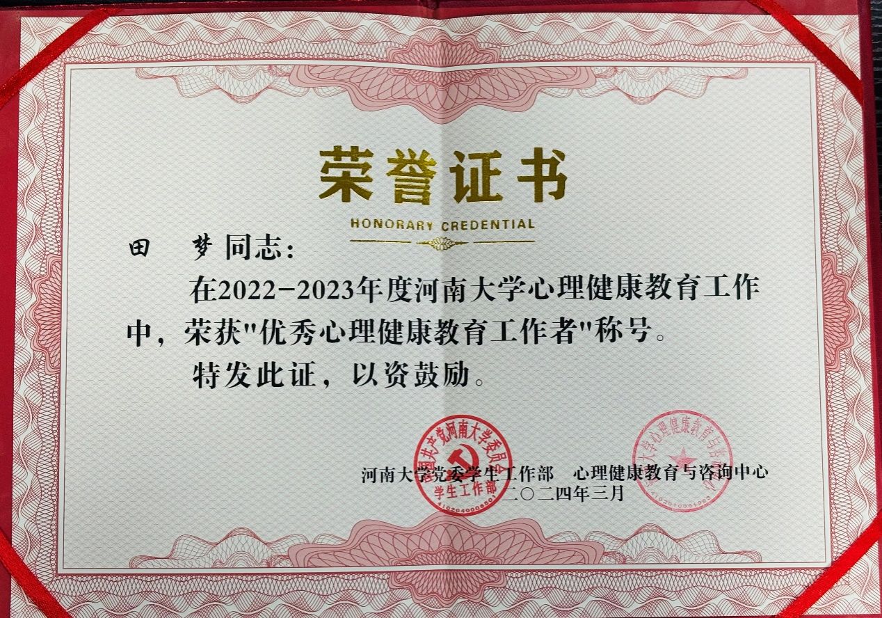 “助学圆梦,青春启航”主题征稿活动优秀组织奖、2023年暑期“资助政策乡村行”活动优秀组织奖五个奖项。田梦被评为2022-2023年度八叉书库