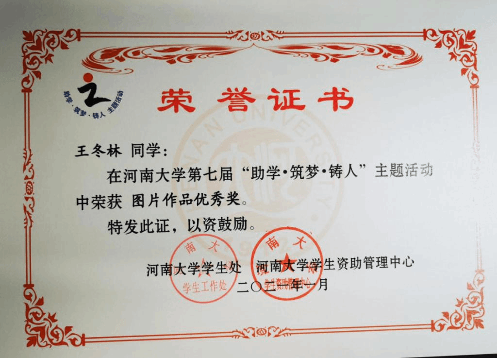 读万卷书,行万里路。感恩学校和国家的资助,让他放下自己的家庭负担全身心投入到学习当中。在未来的道路上,他将会向更多人传递自己获得的温暖和爱心,尽最大的能力回报社会,回报祖国。