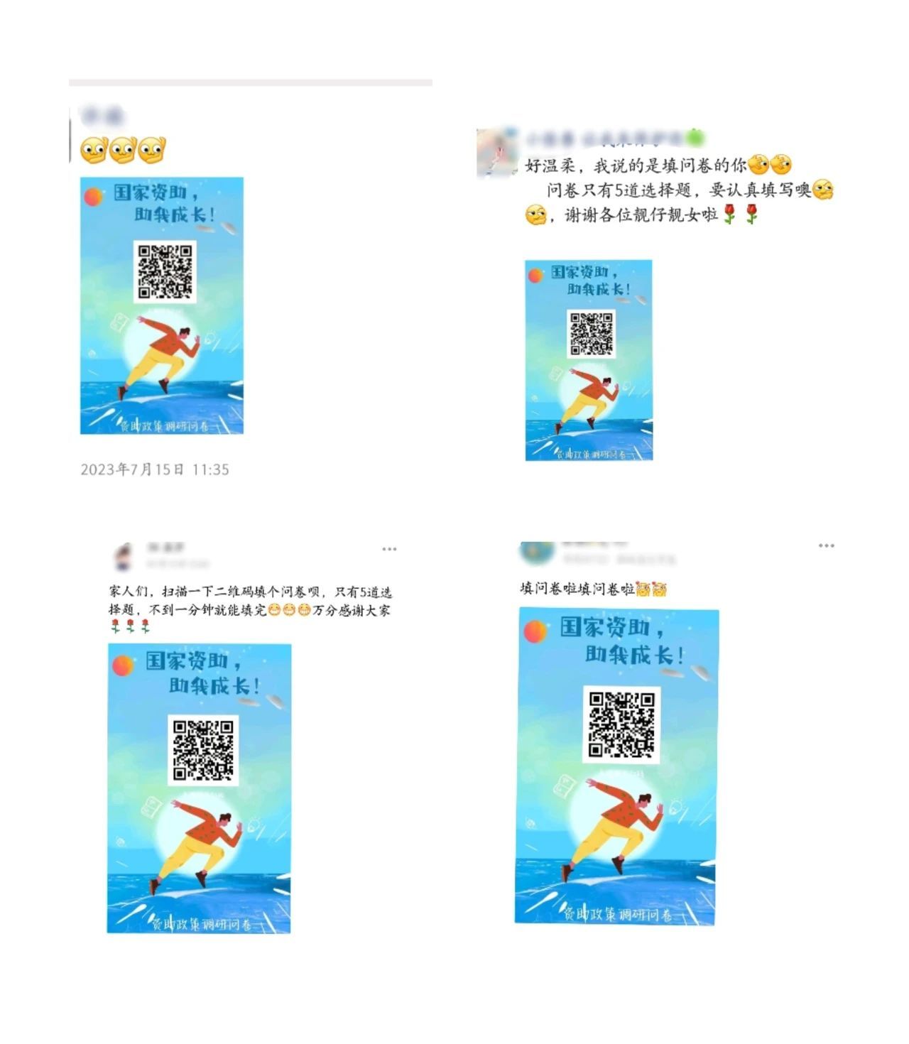 7月15日到7月16日,队员们开展多渠道、多层次、多方位宣传,积极鼓励学生和家长认真如实填写资助政策问卷,充分调动起学生和家长的积极性,取得了显著的成效。