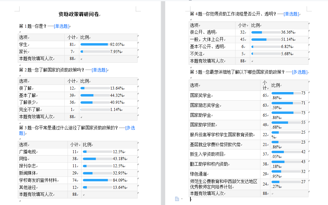 资助政策调研问卷
