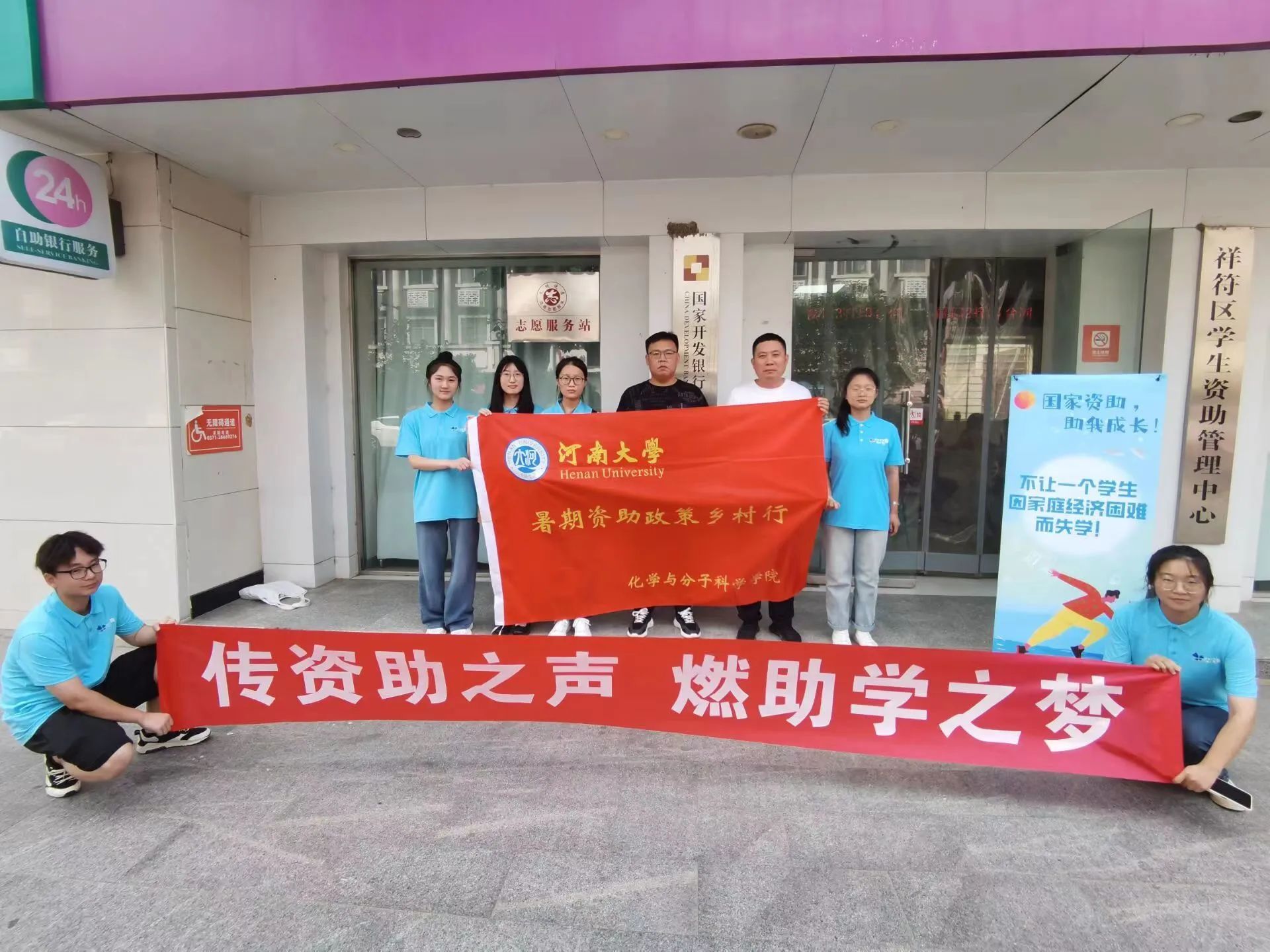7月17日,“传资助之声,燃助学之梦”团队成员集合完毕,乘车前往开封市祥符区资助管理中心,开展资助实践宣讲活动。团队成员在祥符区学生资助管理中心向工作人员请教并交流经验,了解生源地贷款的流程以及当地的学生受助情况。