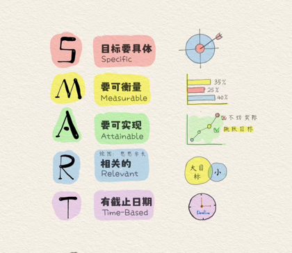 在心理学中,目标设定理论强调了设定明确、具体目标的重要性。当我们设定具体且有挑战性的目标时,我们更有可能采取行动并投入更多精力去实现它们。一个有效的目标应遵循SMART原则,即特定(Specific)、可衡量(Measurable)、可达成(Achievable)、相关(Relevant)和有时间限制(Time-bound)。设定SMART目标的过程本身就是一个澄清我们的意图和精细化我们的计划的过程,它有助于我们更好地管理时间,因为我们知道我们需要在何时完成什么,以及如何判断任务是否已经完成。