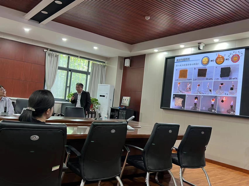报告会上,熊焕明教授首先回顾了碳点材料的发展历程,介绍了碳点的性质、分类;随后,对碳点的合成思路进行了汇总和概述,指出了现有液相合成碳点路径的局限性,并提出了对新一代固相法合成碳点线路的理解;最后,根据碳点特性展望了它在发光器件、生物成像、电化学储能以及电化学催化剂中的应用价值。报告内容丰富且有深度,开阔了与会师生在碳点制备与应用方向的视野。报告结束后,熊焕明教授与参会师生进行了深入而热烈的讨论。