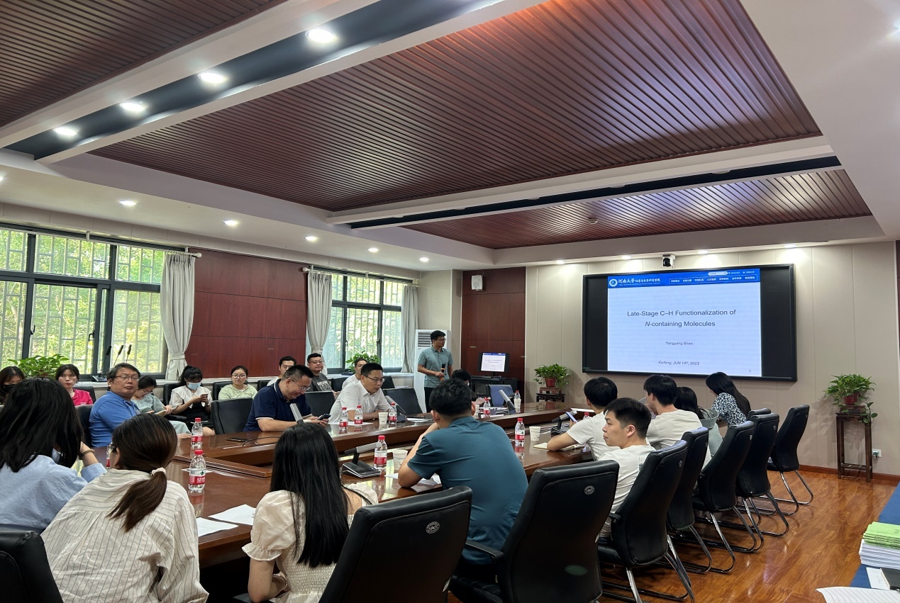 邀请,西安交通大学沈阳阳教授在学院220会议室做了一场题为“Late-Stage C-H Functionalization of N-containing Molecules”的学术报告。报告由副院长张磊主持,五十余位师生参加。