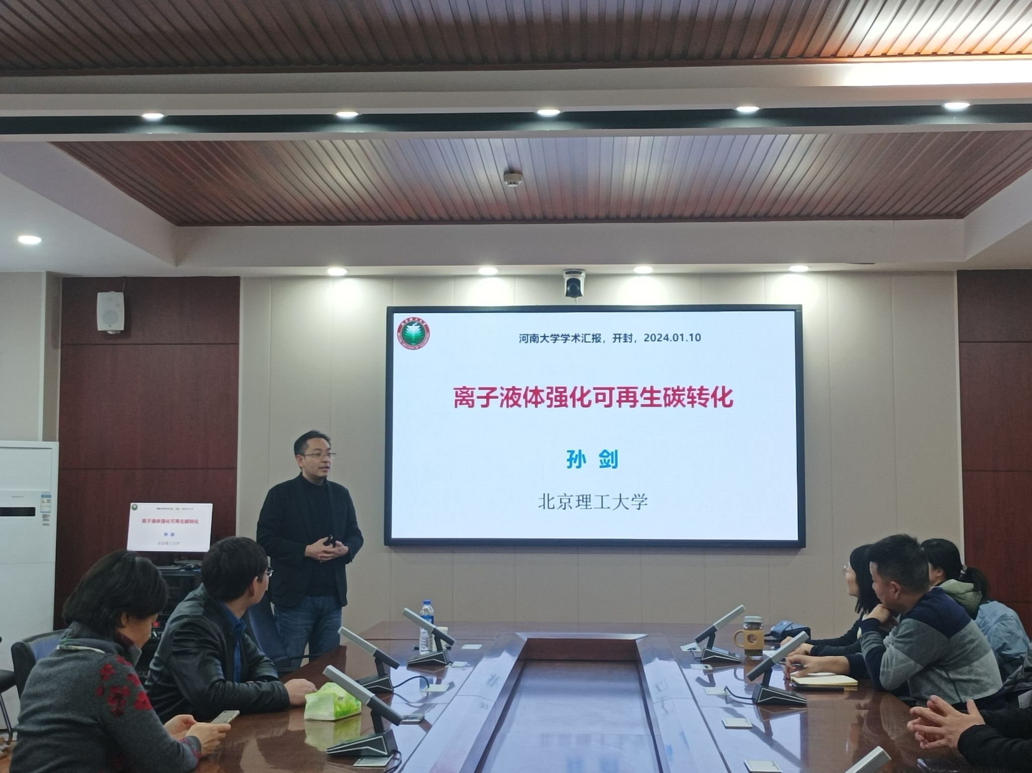 邀请,1999级校友、北京理工大学孙剑教授在学院220会议室进行了一场题为“离子液体强化可再生碳转化”的学术报告。本次报告由副院长徐元清主持。