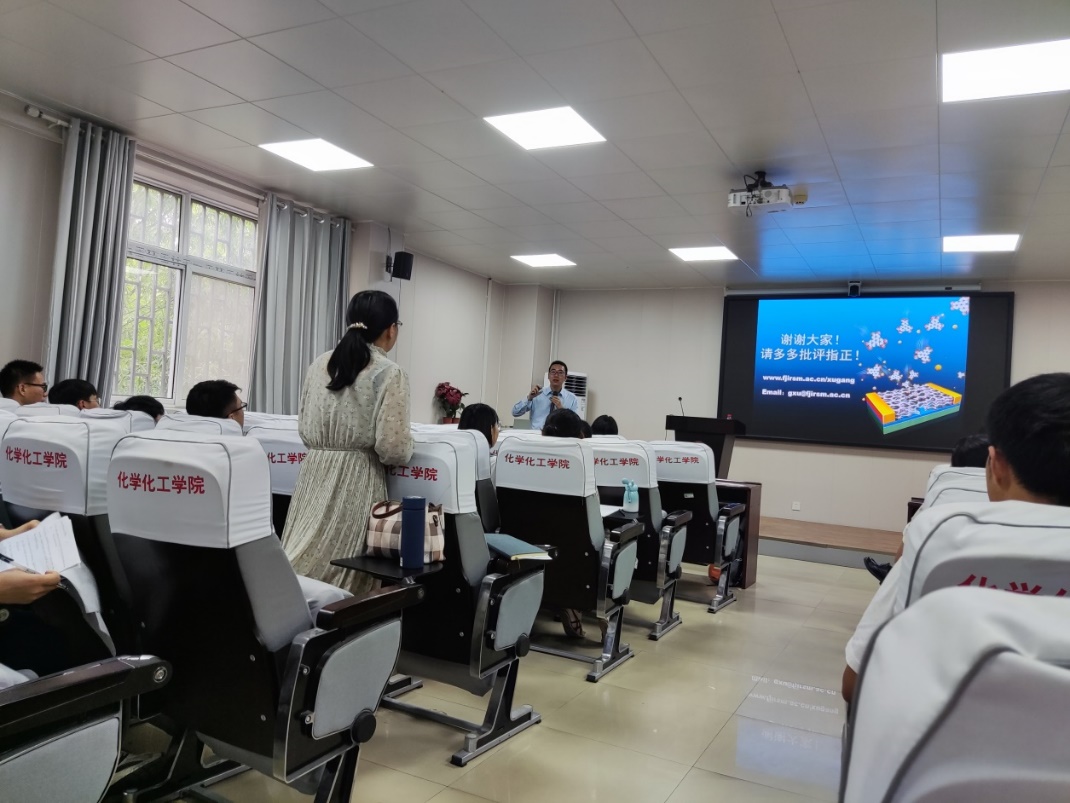 金明校区化学化工学院226会议室分别作了题为“表面全官能团化的二维材料”和“铝氧分子环的设计合成”学术报告。报告由副院长徐元清主持。