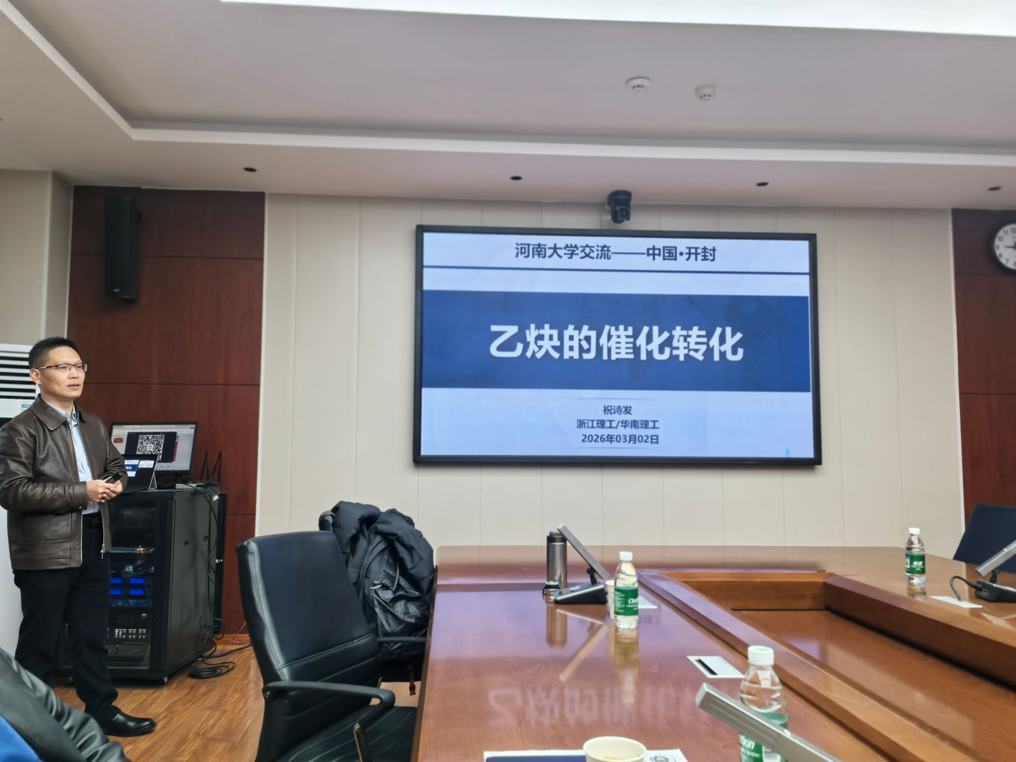 应学院邀请,浙江理工大学祝诗发教授于2026年3月2日上午在学院220会议室做了题为“乙炔的催化转化”的学术报告,本次报告由徐元清院长主持。在报告中,祝诗发聚焦于乙炔这一重要化工原料的应用拓展,系统阐述了如何将大宗原料乙炔高效转化为高附加值精细化学品,首次实现乙炔的1,1-聚合反应,成功解决了高分子化学领域长达半个世纪的合成难题,有效攻克了乙炔易燃易爆、易自聚的反应瓶颈。祝诗发的研究不仅为乙炔的催化转化提供了全新思路,也为功能共轭高分子材料的开发开辟了新的方向。整场报告内容丰富、逻辑严谨,祝诗发讲解深入浅出、思路清晰,生动展现了其课题组在乙炔转化领域的前沿成果。报告结束后,祝诗发与现场师生进行了深入的学术交流,耐心解答各类问题,并结合自身科研经历分享了宝贵的心得体会,现场学术氛围浓厚,交流气氛热烈。