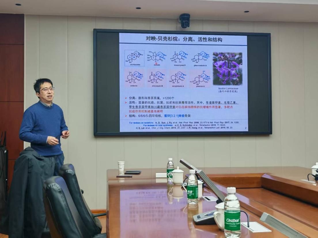 2026年1月17日,应学院邀请,浙江大学丁寒锋教授在学院220会议室作了题为“去芳构化策略驱动的天然产物全合成”的学术报告,本次报告由执行院长徐元清主持。