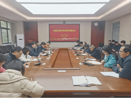 学院党委书记常凤香传达了1017日学“至善”书记沙龙“1+5”筑峰学科党组织书记专场会议精神。学校党委书记季波要求筑峰学科各单位要围绕如何以党建引领推动学科筑峰深入思考和回答好“基层党建抓什么、基层党建做什么、基层党建要做成什么”这三个关键问题,确保党建工作与中心任务同频共振、深度融合,并提出要坚守“一个根本”、夯实“两个基础”、全力攻坚“九件大事”。学校党委副书记李平强调,各单位要认真贯彻落实本次会议精神和季波书记讲话要求,要牢固树立底线意识,抓好班子、带好队伍,纵深推进全面从严治党,充分发挥党组织政治核心作用。