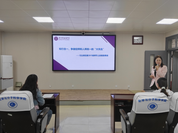 为进一步加强师范生对教师职业道德的认识,提高师范生的教师职业素养,为将来从事教师职业打下坚实基础,9月23日上午,学院邀请郑州外国语中学李霞老师为本科生作“师德——立身之本 学识——立教之本”的专题报告。2020级化学专业全体本科生和实习指导教师参加,会议由孙琳副教授主持。