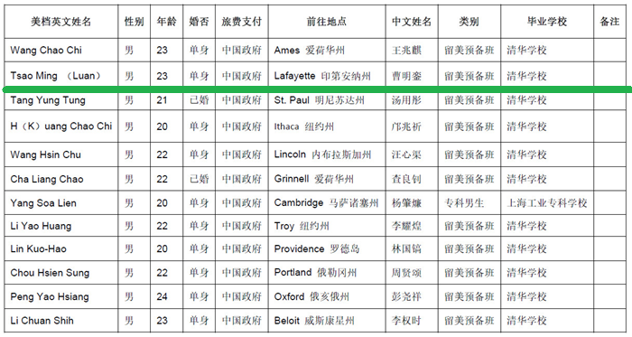 7名学生全是清华学生,由中国政府支付旅费。