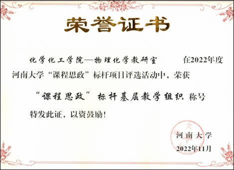 物理化学教研室获批为“课程思政”标杆基层教学组织