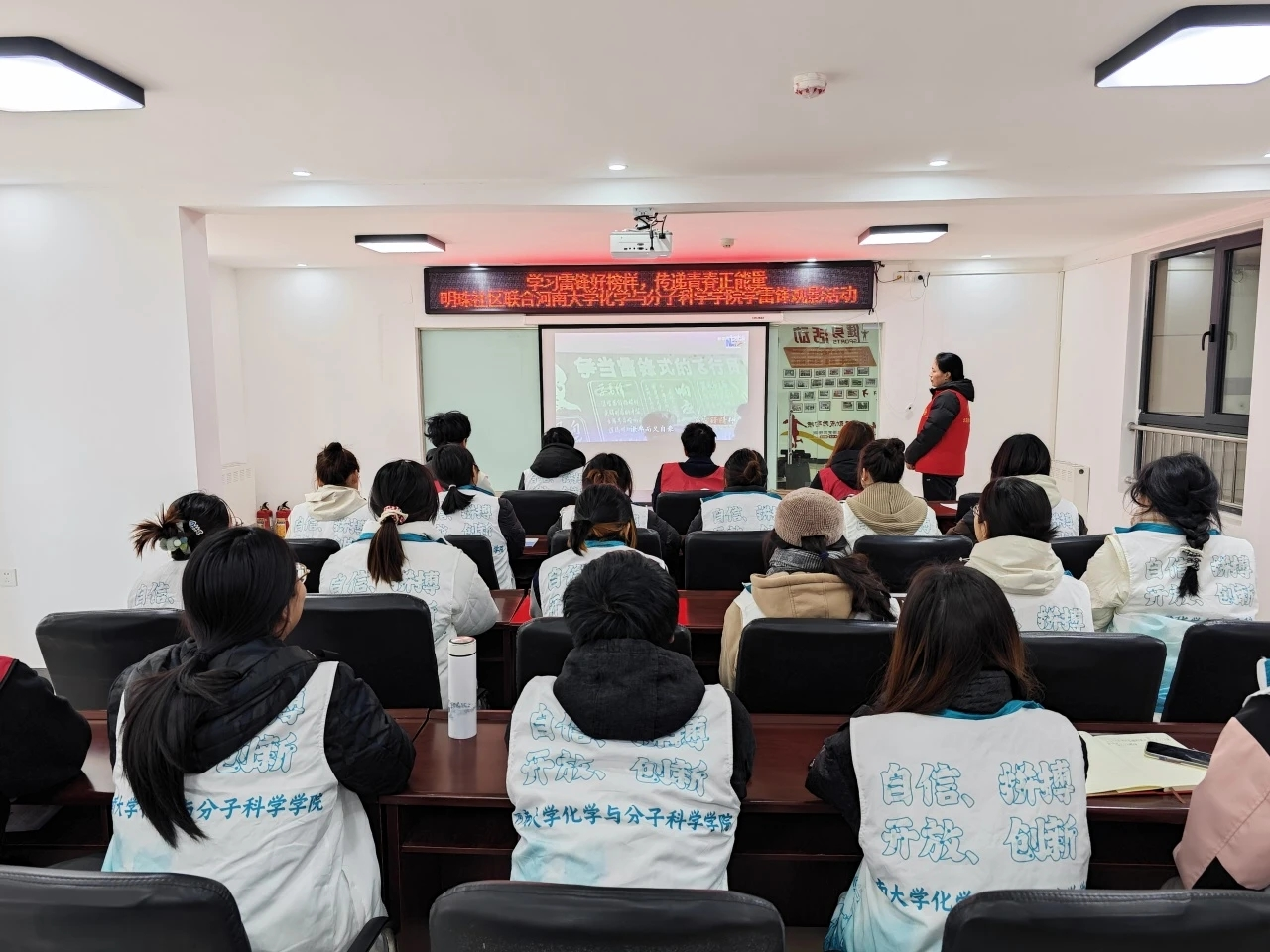行胜于言,在明珠社区工作人员的带领下,同学们进行了“学习雷锋精神”观影活动。不仅感受到了雷锋精神的伟大力量,也坚定了自己践行雷锋精神的决心。此外同学们还积极投身于社区周边公共区域、街道及绿化带的垃圾清理工作,有效改善了社区内外的环境卫生状况。在明珠社区,同学们着重加强了市民文明出行的宣传教育,提升了市民保护环境的意识和社会责任感,充分发挥了青春力量,为推动城市文明创建工作贡献了积极力量。